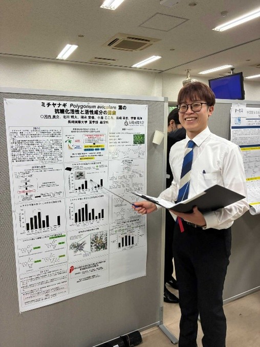 2025年11月15日・16日に長崎大学で開催された第42回日本薬学会九州山口支部大会で5年生2名がポスター発表を行いました。