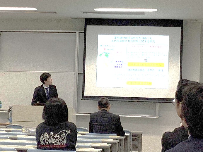 本学薬学部FD委員会による第16回薬学研究発表会が開催され、北川助教が「未利用部位に着目した薬用植物の新たな価値創出に関する研究」という演題で発表しました。講演の後、活発な質疑応答が行われました。
